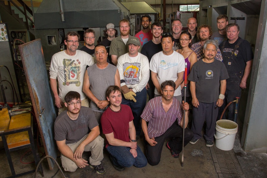 Among their glassblowing staff, they employ artists who hold BFA and MFA degrees in fine arts, as well as those who have learned the craft over many years of practical experience. Their Hot Shop team is second to none and works diligently to continue designing and innovating the field of high-quality glass art.