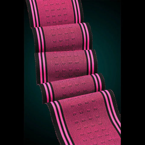 Sosumi Weaving creates this artistic Wink Scarf in Watermelon and Magenta.